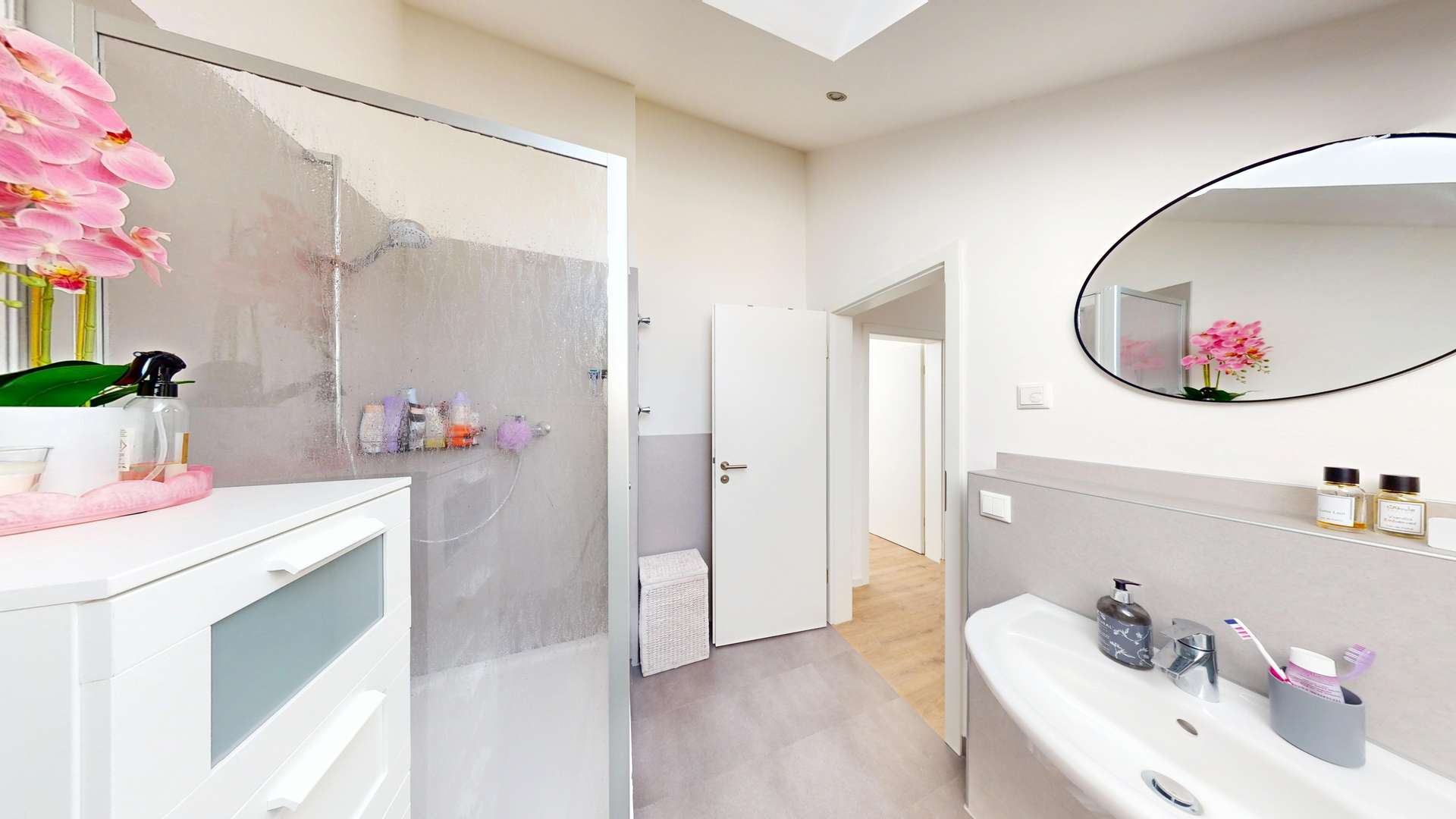 - **1 Badezimmer**: Das moderne Badezimmer ist mit einer Dusche ausgestattet und bietet alles, was Sie für Ihren täglichen Komfort benötigen.