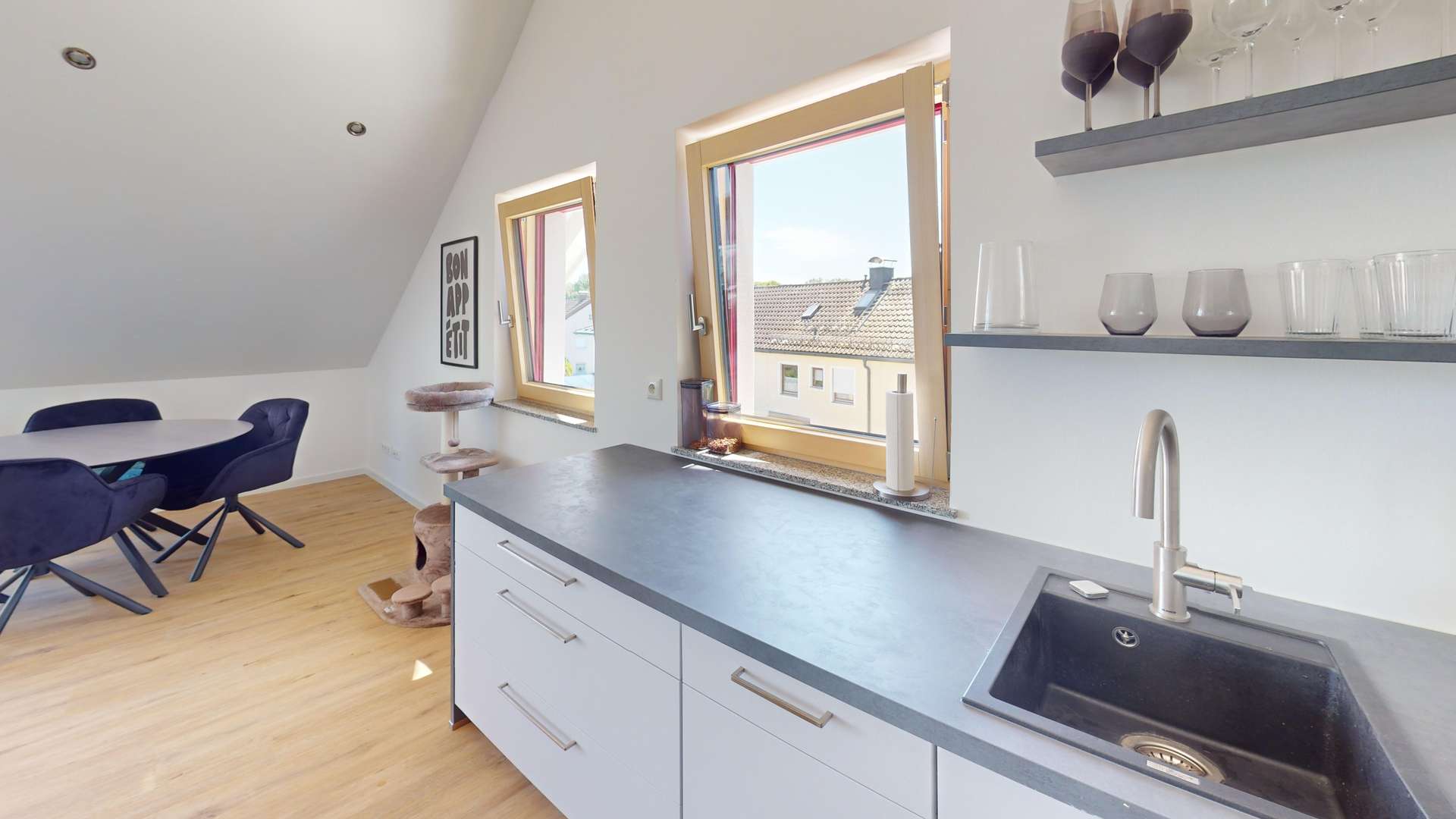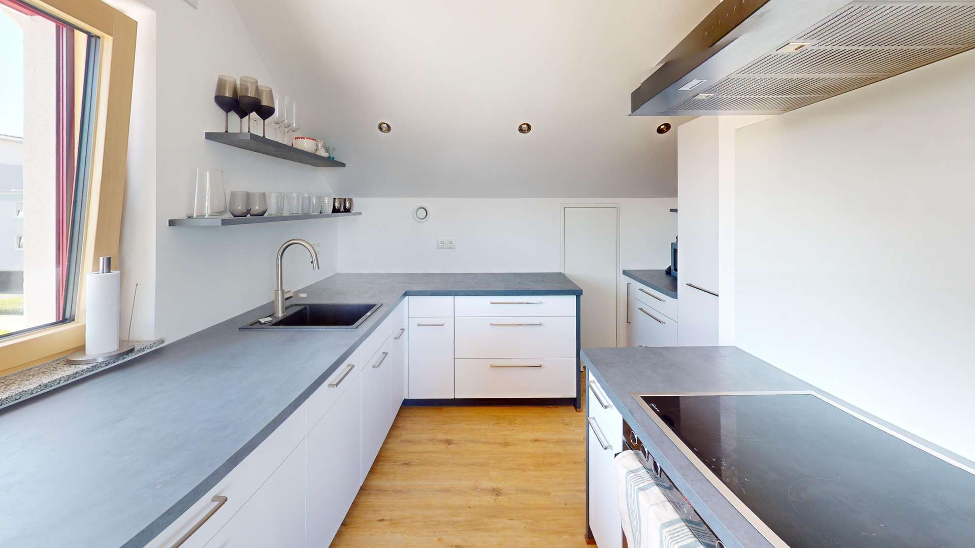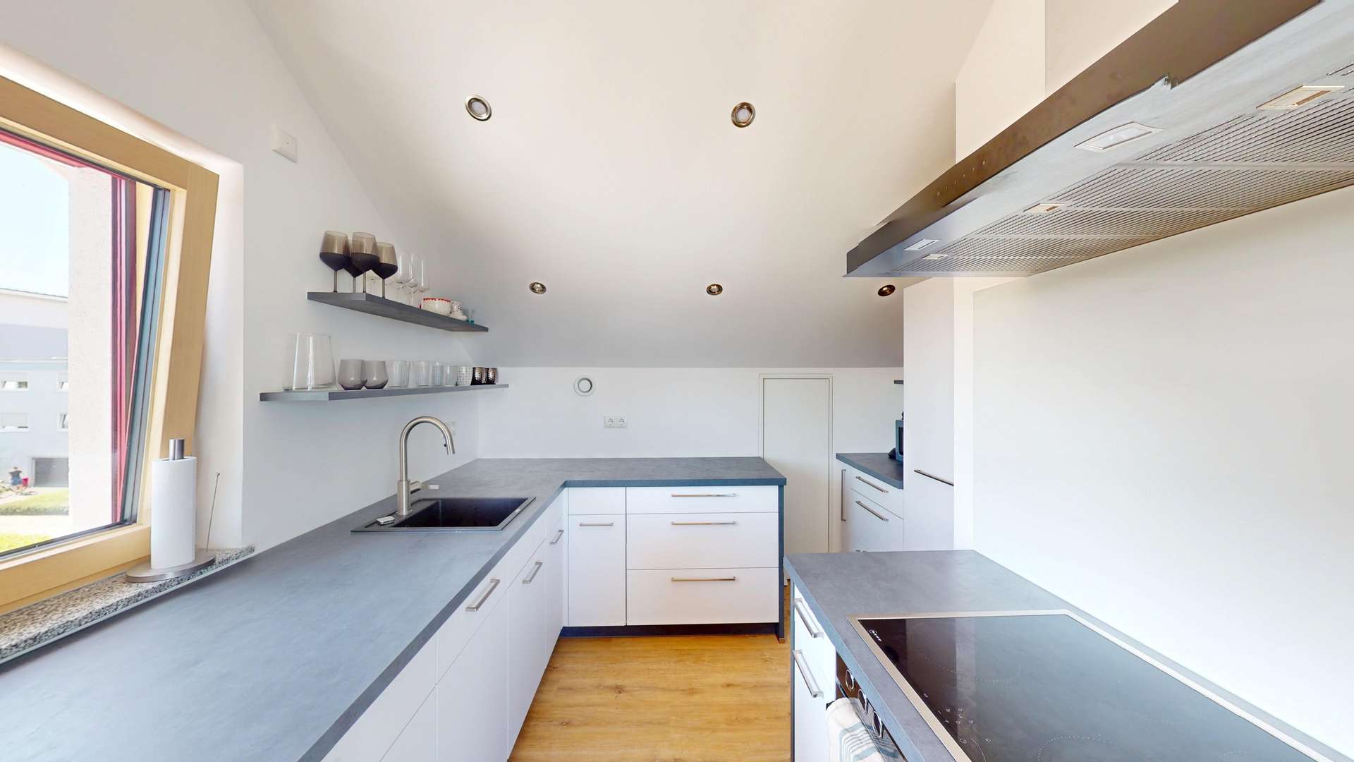 - **1 Schlafzimmer**: Das Schlafzimmer ist ruhig gelegen und ideal für eine erholsame Nachtruhe. Durch das große Dachfenster können Sie den Sternenhimmel bewundern.